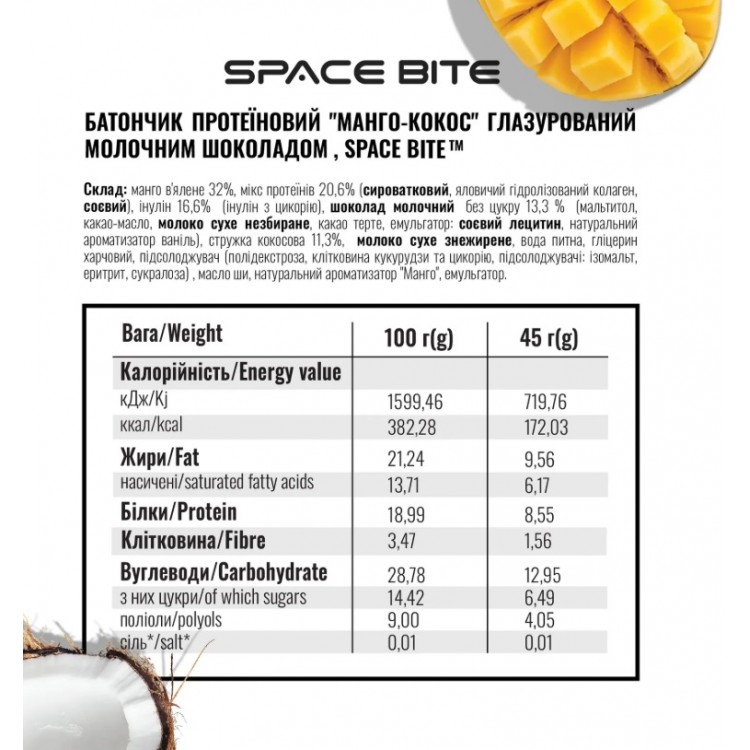 | Тип продукту | Протеїнові батончики (високовуглеводні) |