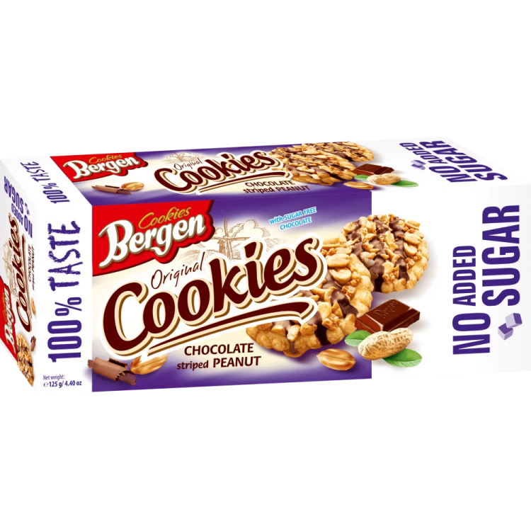 Печиво Bergen з арахісом та шоколадними смужками – це смачний та корисний продукт, який ідеально підходить для людей, що стежать за своїм харчуванням. Виготовлене у Польщі під брендом Bergen Cookies, це протеїнове печиво є відмінним вибором для тих, хто шукає альтернативу звичному десерту без додавання цукру.