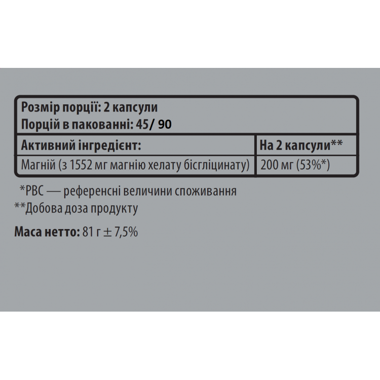 Магній (з 1552 мг магнію хелату бісгліцинату) |