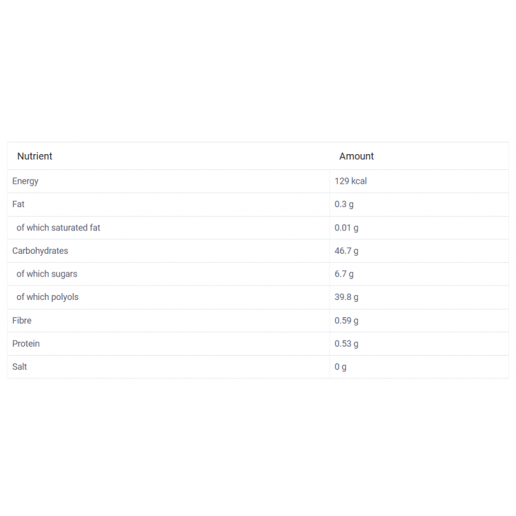 Інгредієнти: яблучний пиріг — 59%, підсолоджувач: мальтит, лимонний сік