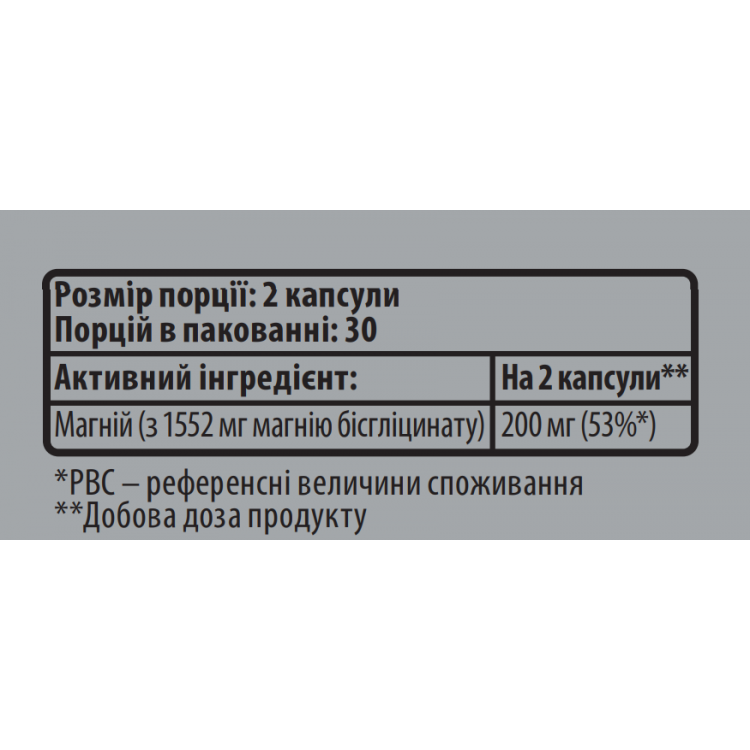Основний інгредієнт – магній у формі гліцинату, який включає в себе: