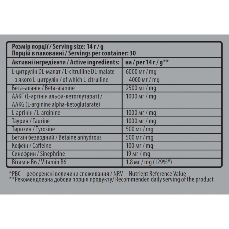 | Тип продукту | Передтренувальний комплекс |