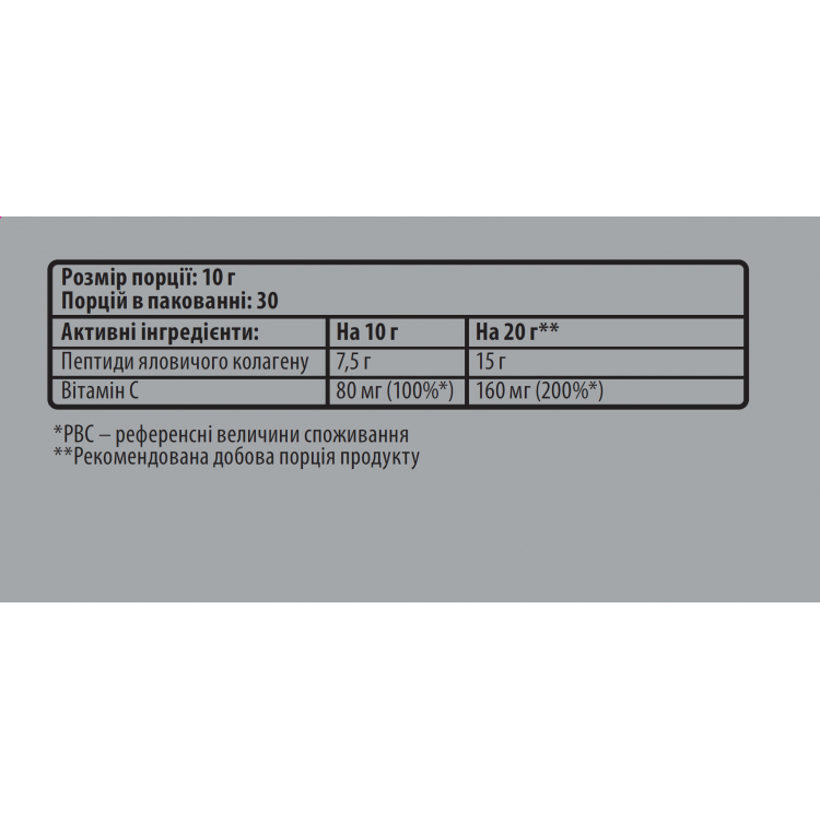Розмір порції: 10 г (1 мірна ложка) |