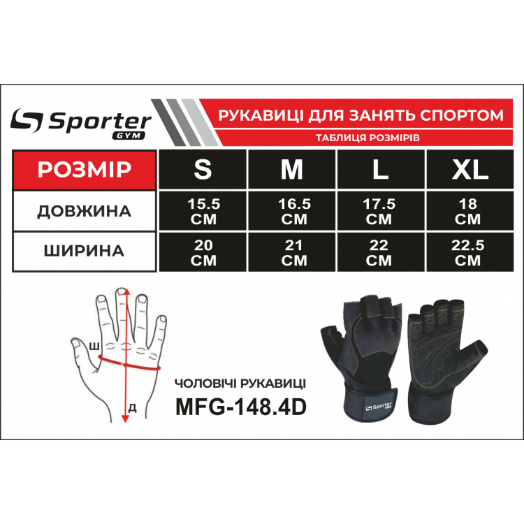 Описание Перчатки Men (MFG-148.4 D), SporterGYM - Черный/ Серый