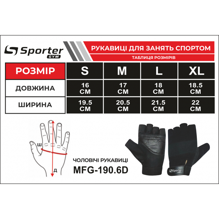 Перчатки Men (MFG-190,6 D), SporterGYM - Черные являются идеальным выбором для любителей спорта и фитнеса. Они обеспечивают комфорт и защиту во время тренировок, а также помогают улучшить удержание и снизить риск возникновения травм.