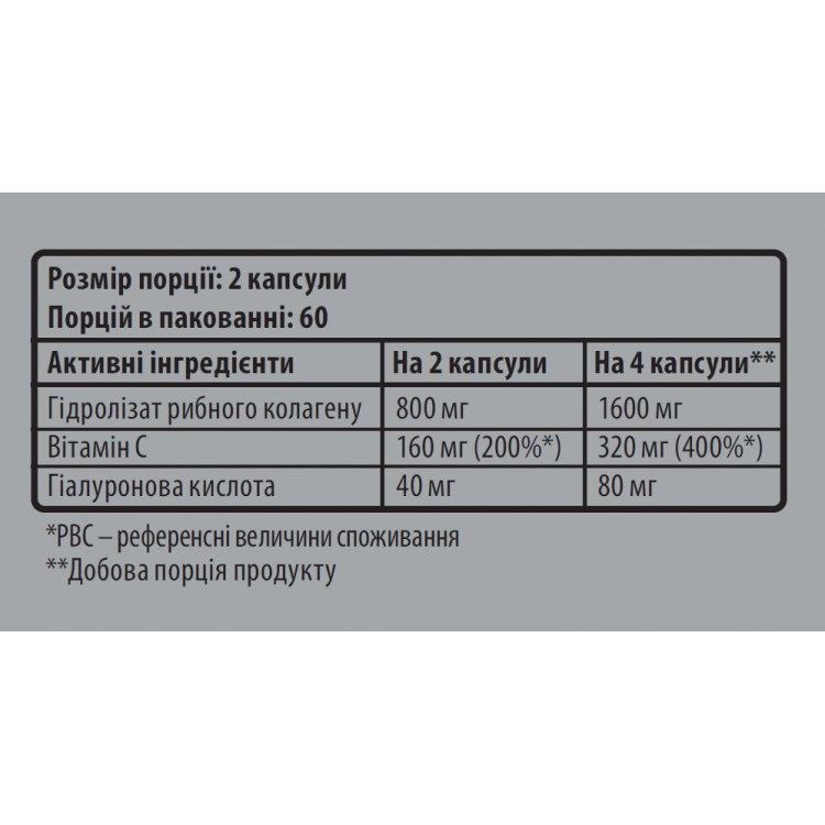 Ингредиенты: гидролизат рыбного коллагена, аскорбиновая кислота