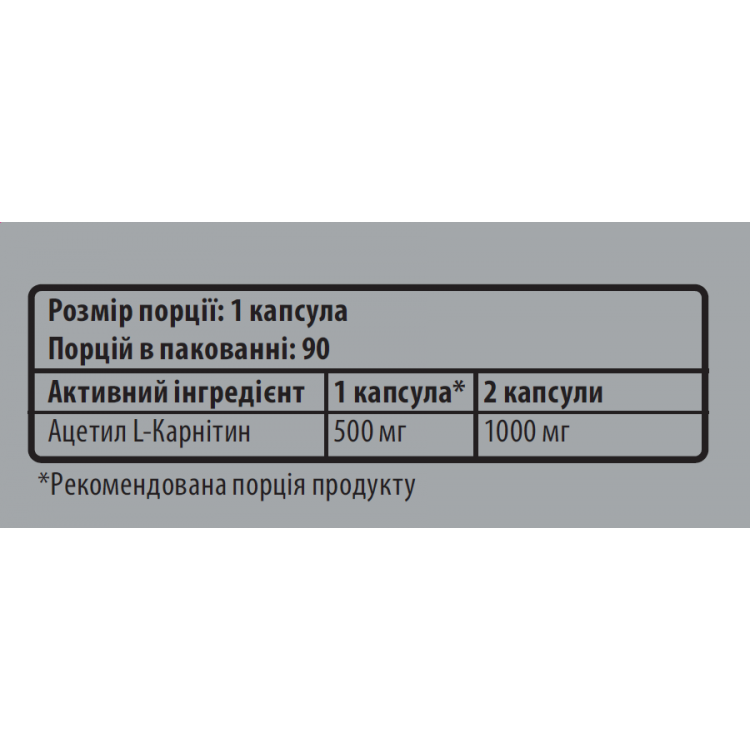 - Ацетил L-Карнитин — 500 мг в каждой капсуле;