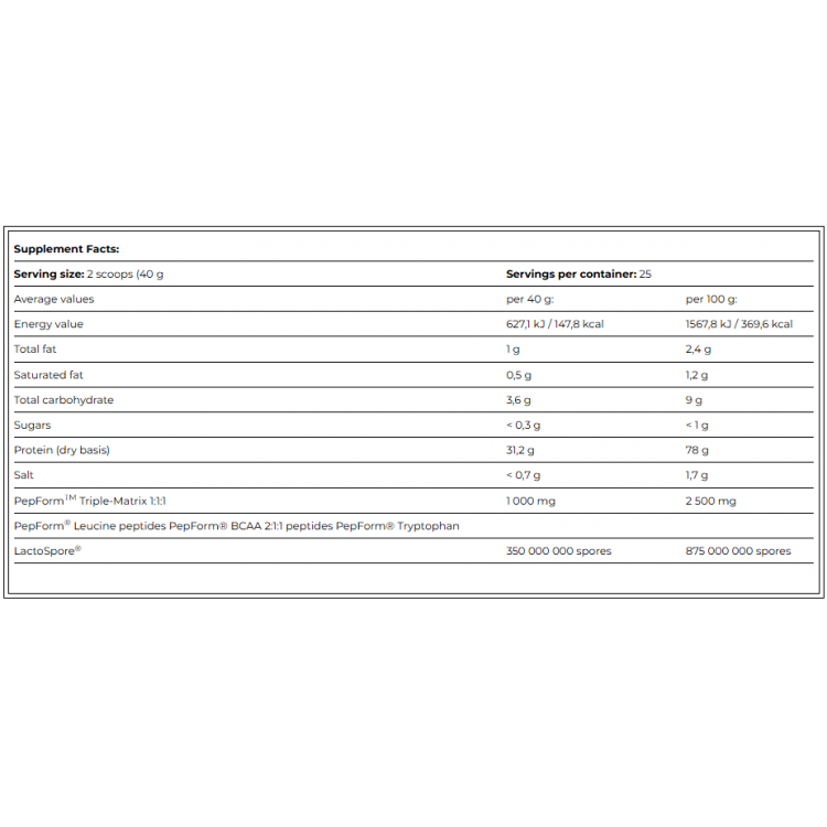 Основным ингредиентом протеина Amix HydroBeef® является гидролизат говяжьего белка, обеспечивающий высокую усвояемость и быстроту действия. В каждой порции содержится 78% чистого белка, что делает этот продукт одним из самых эффективных на рынке. Дополнительно в состав входят: