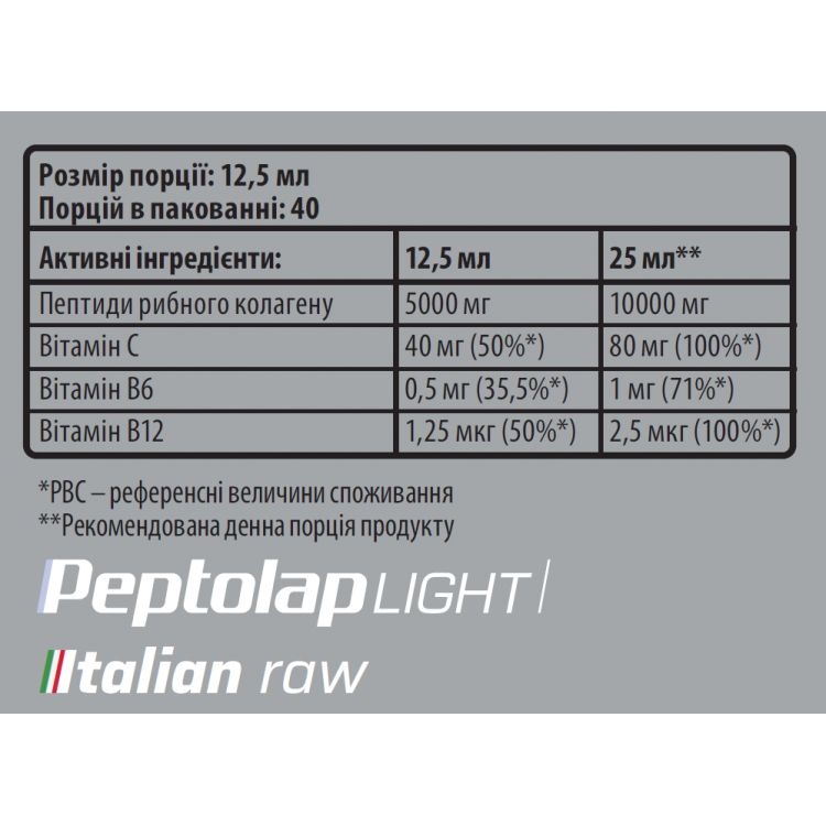 Ингредиенты: вода очищенная, пептиды рыбного коллагена I типа Peptolap