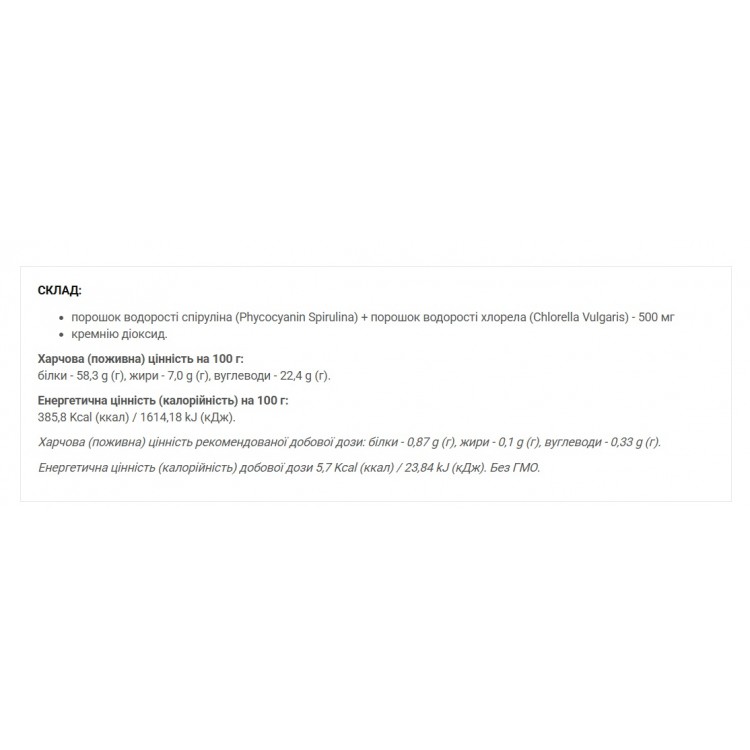 | Тип продукта | Спирулина |